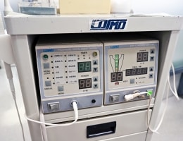 コスモペリオエンドシステムは電気的に高周波電流発生装置と超音波振動発生装置の2つの装置からなっており、さらに電気抵抗測定装置が付随しております。